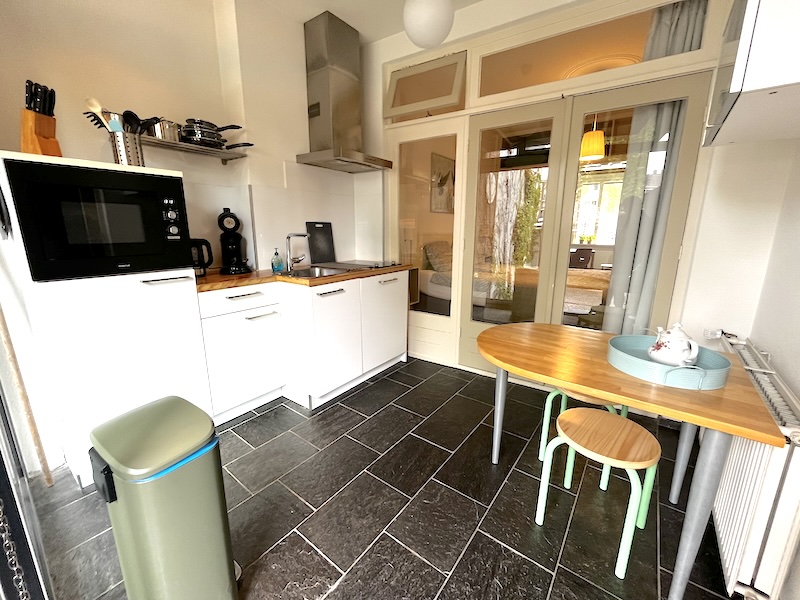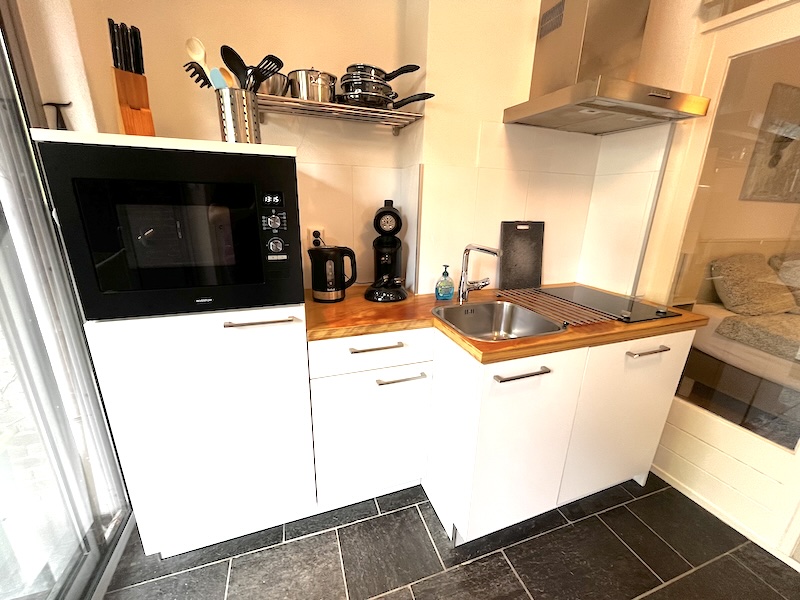 Met de compleet ingerichte keuken kunt u zelf uw maaltijden bereiden. De keuken is o.a. voorzien van vaatwasser, koelkast, combimagnetron, keramische kookplaat, afzuigkap, servies en bestek.