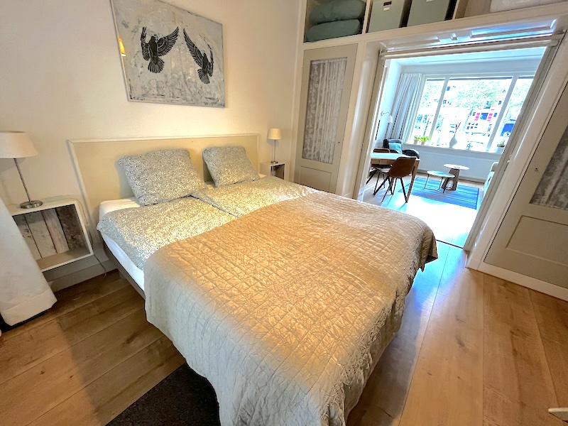 De slaapkamer is voorzien van een luxe en ruime 2-persoons boxspring.
